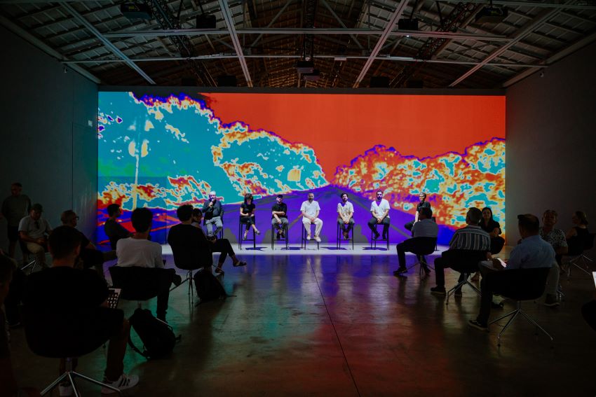 En la presentación han participado el director de Bombas Gens y comisario de la muestra, Artur Duart; el director artístico del centro, Jordi Sellas; y parte del equipo creativo, con nombres como Democràcia Estudio, Vitamin-arte, Radiantelab, Ricardo Ruíz y Marta Moreira.