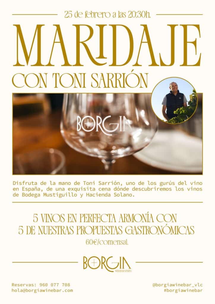 BORGIA Winebar organiza un maridaje junto a Toni Sarrión