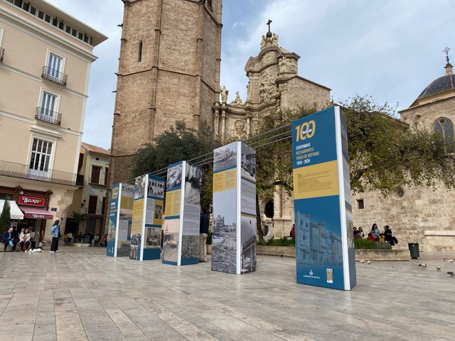 La plaza de la Reina acoge una exposición sobre el centenario de los restaurantes del paseo de Neptuno