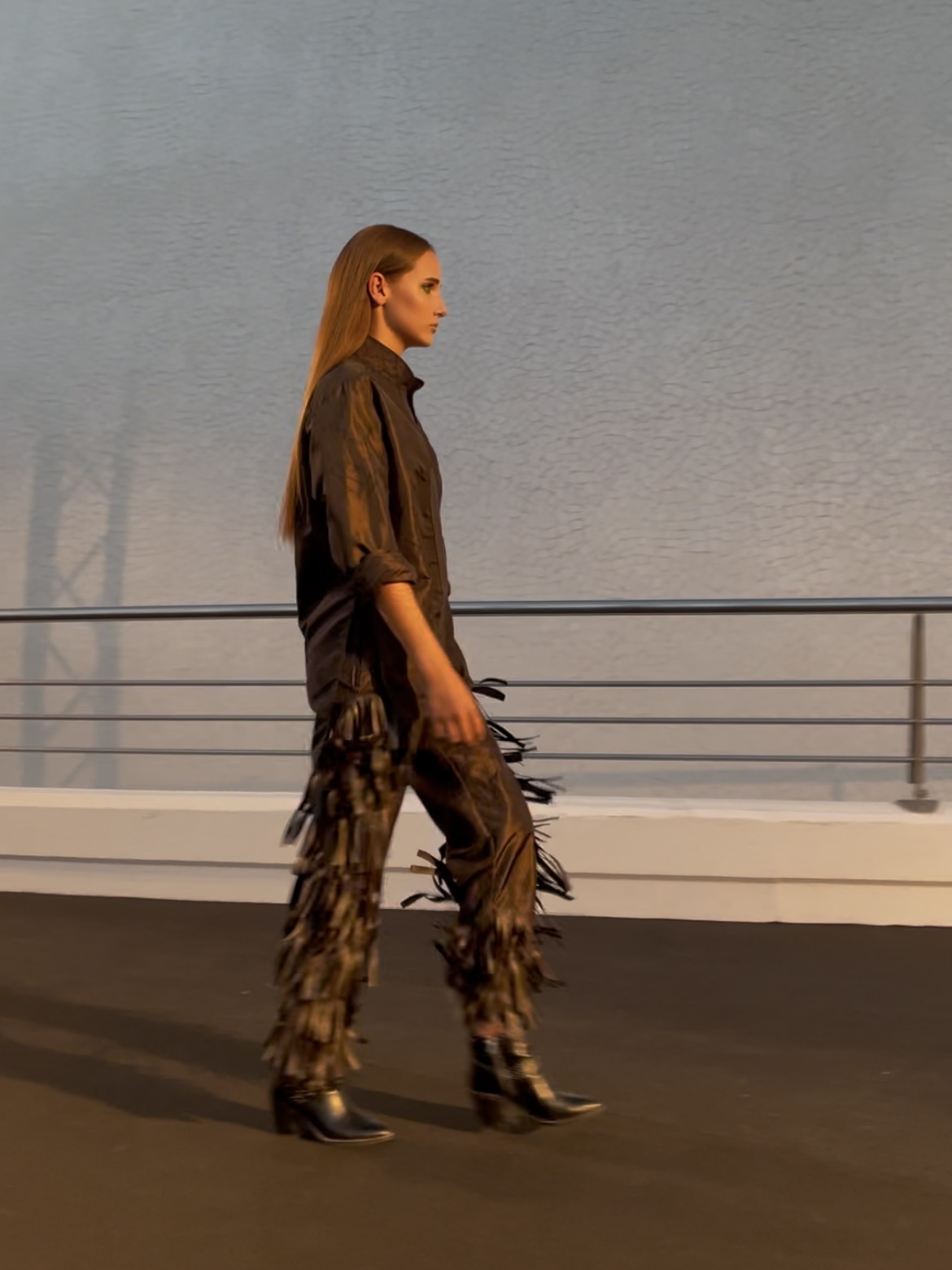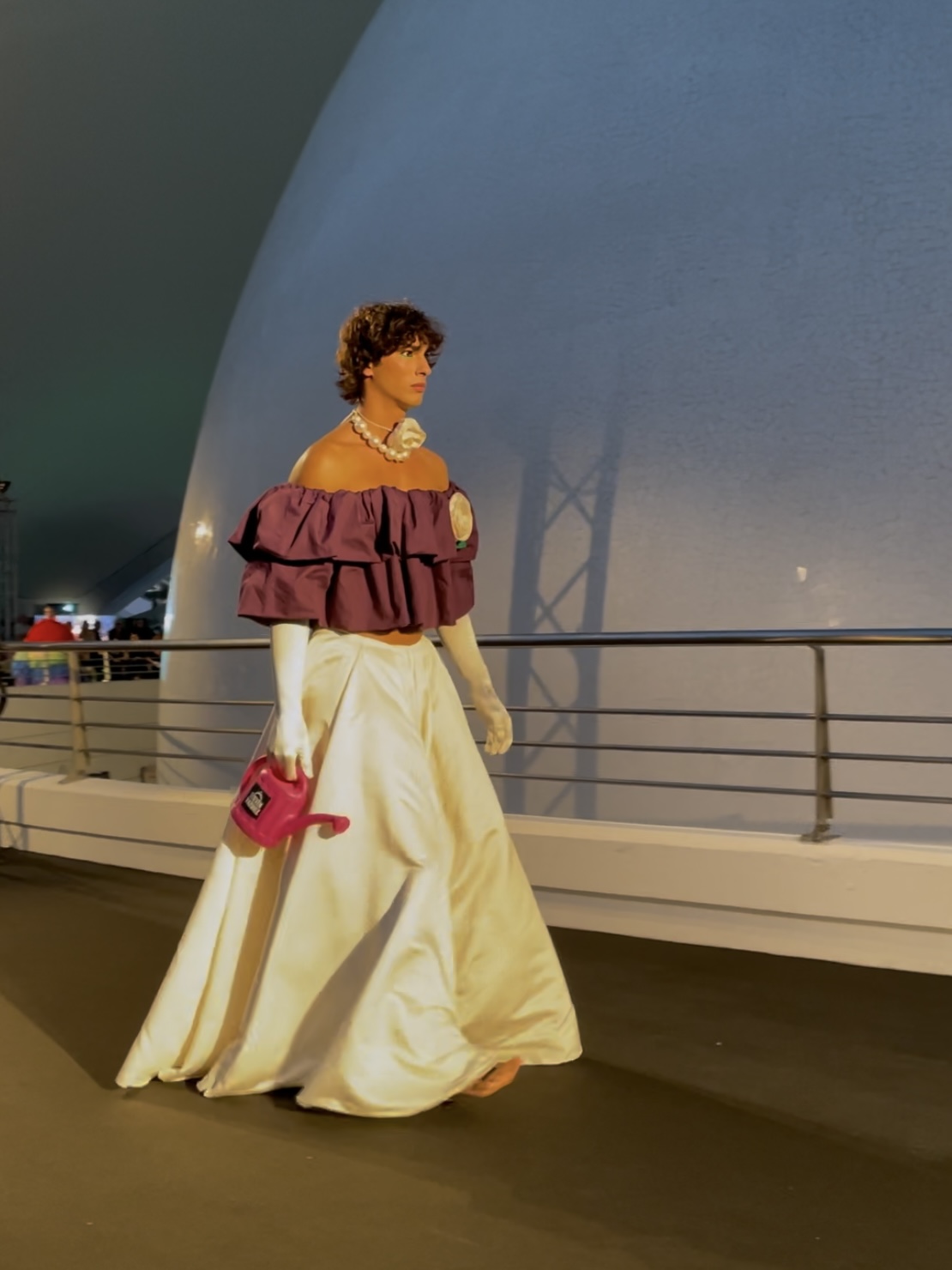Sin duda, uno de los triunfos indiscutibles de la programación es descubrir nuevas promesas que llegan pisando fuerte y logran conquistar todas las miradas. El “Colectivo Emergentes“, formado por jóvenes diseñadores de la Generación Z, trajo una explosión de ideas y lenguajes diferentes a la pasarela. Es su capacidad de romper con las normas establecidas y la fusión entre las referencias culturales y la tecnología lo que hizo de esta muestra un despliegue de sensibilidad y contemporaneidad a partes iguales.