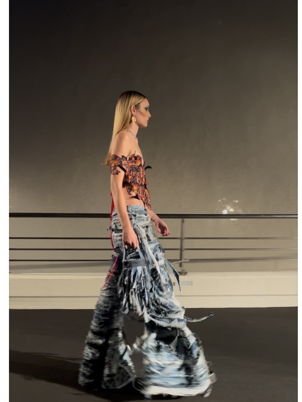 Sin duda, uno de los triunfos indiscutibles de la programación es descubrir nuevas promesas que llegan pisando fuerte y logran conquistar todas las miradas. El “Colectivo Emergentes“, formado por jóvenes diseñadores de la Generación Z, trajo una explosión de ideas y lenguajes diferentes a la pasarela. Es su capacidad de romper con las normas establecidas y la fusión entre las referencias culturales y la tecnología lo que hizo de esta muestra un despliegue de sensibilidad y contemporaneidad a partes iguales.