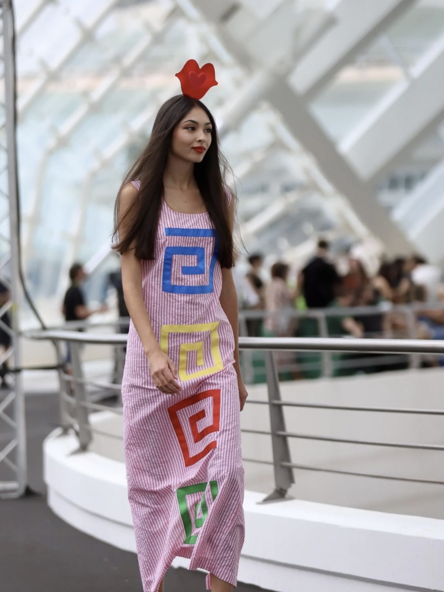 Agatha Ruíz de la Prada puso la sonrisa, el optimismo y la fantasía a la velada. Recién llegada de la Mercedes-Benz Fashion Week, llegó al Clec Fashion Festival de Valencia con una propuesta fiel a su estilo, la diseñadora desplegó un festival de color y formas icónicas como corazones y flores.