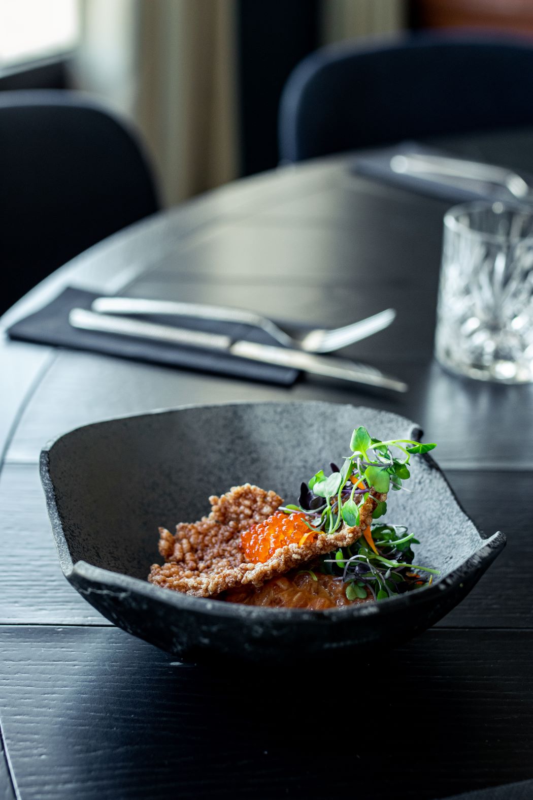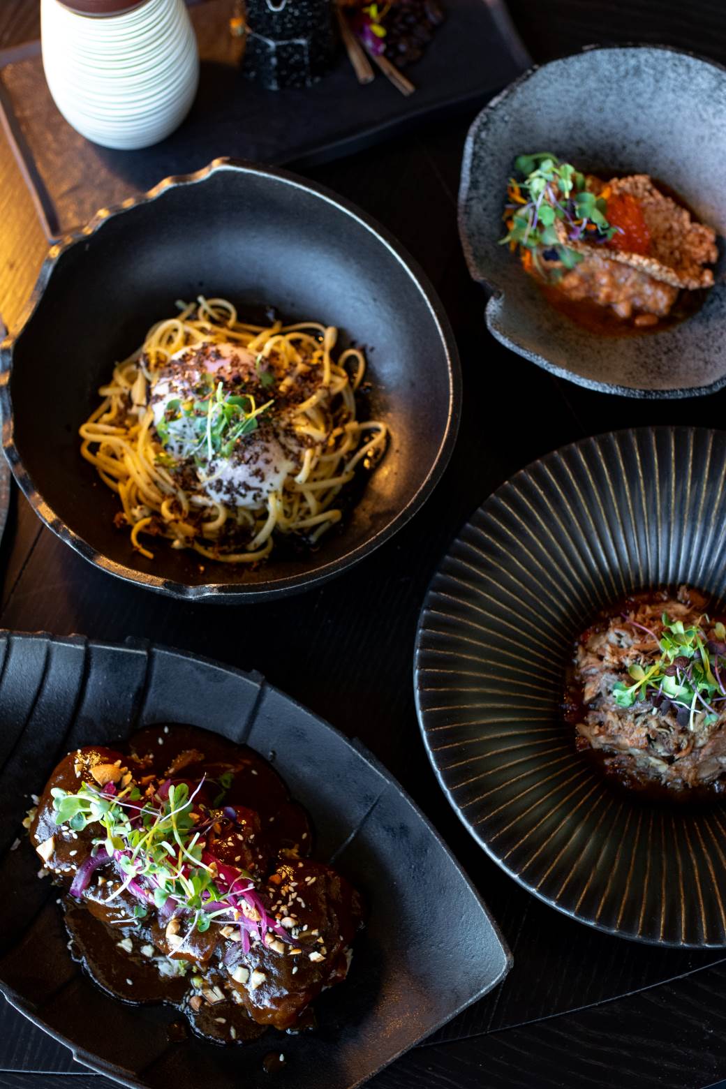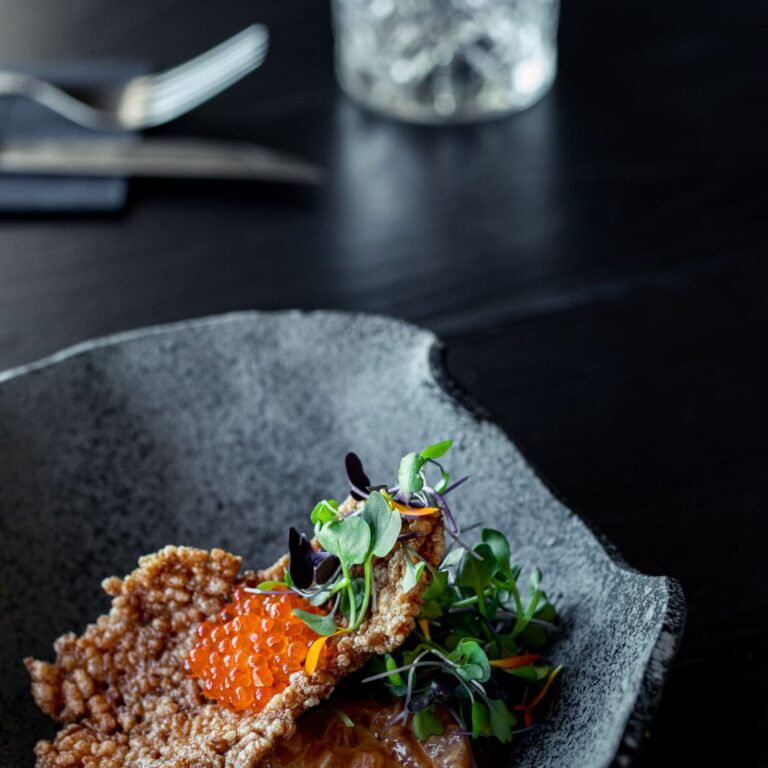 Para compartir, El Mirador ofrece un recorrido por algunas de las tapas más famosas de nuestra cocina, donde no pueden faltar las croquetas cremosas de jamón ibérico, la ensaladilla, la ventresca de atún y la oreja de cerdo confitada. El toque de fusión lo ponen algunos platillos más atrevidos como el gochujang salmón con aguacate asado y huevas de trucha con salsa ponzu o la ensalada césar teriyaki style, completándose la oferta con algunos bocados a dos manos como el pan brioche de panceta ibérica o la burger de Wagyu, acompañada de beicon, queso ahumado y cebolla caramelizada.