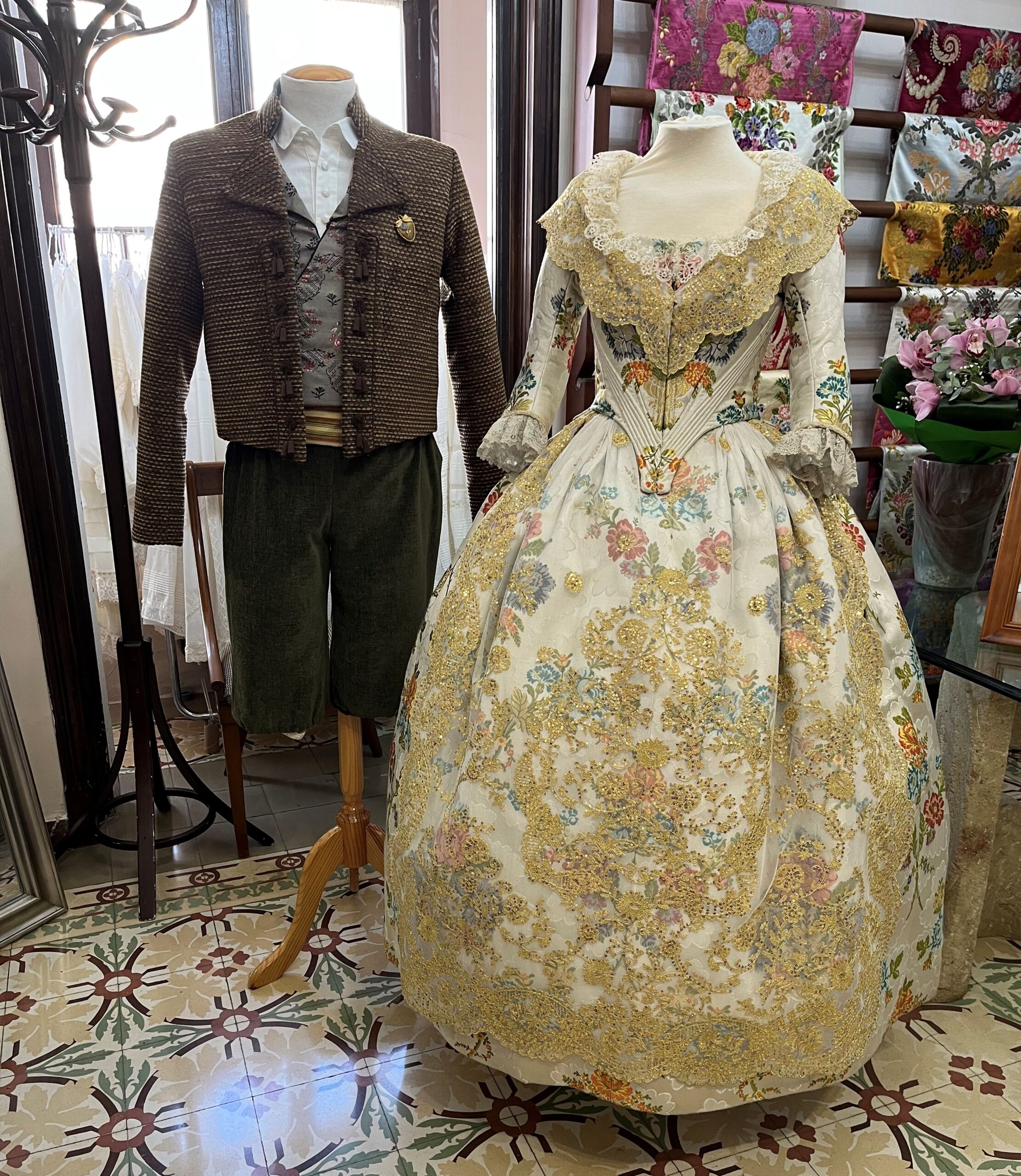 En esta exposición, los asistentes podrán admirar dos trajes de especial relevancia en la trayectoria de la indumentarista: un traje masculino tradicional de torrentí con su chupa y correspondiente chaleco y un vestido de fallera del siglo XVIII con jubón, elaborado con una pieza de seda blanca original del telar de Rafael Catalá. Ambas piezas son una muestra del refinamiento y la elegancia que caracteriza el trabajo de Amparo Fabra y su dedicación a mantener viva la tradición de la indumentaria valenciana.