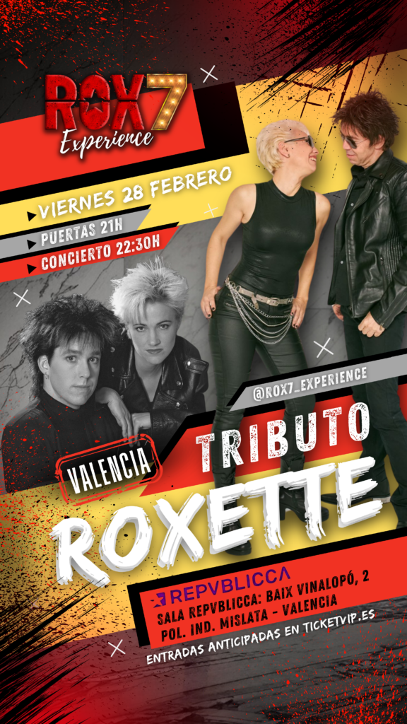 Los amantes del pop rock de los años 80 y 90 están de enhorabuena. Rox7 Experience, la única banda tributo a Roxette en España, irrumpe con fuerza en la escena musical para rendir homenaje a uno de los dúos más icónicos de la historia en la Sala Repvblicca de Valencia el próximo 28 de febrero. Con un espectáculo que revive la esencia y energía de los suecos Marie Fredriksson y Per Gessle, Rox7 Experience se consolida como la mejor opción para los nostálgicos.