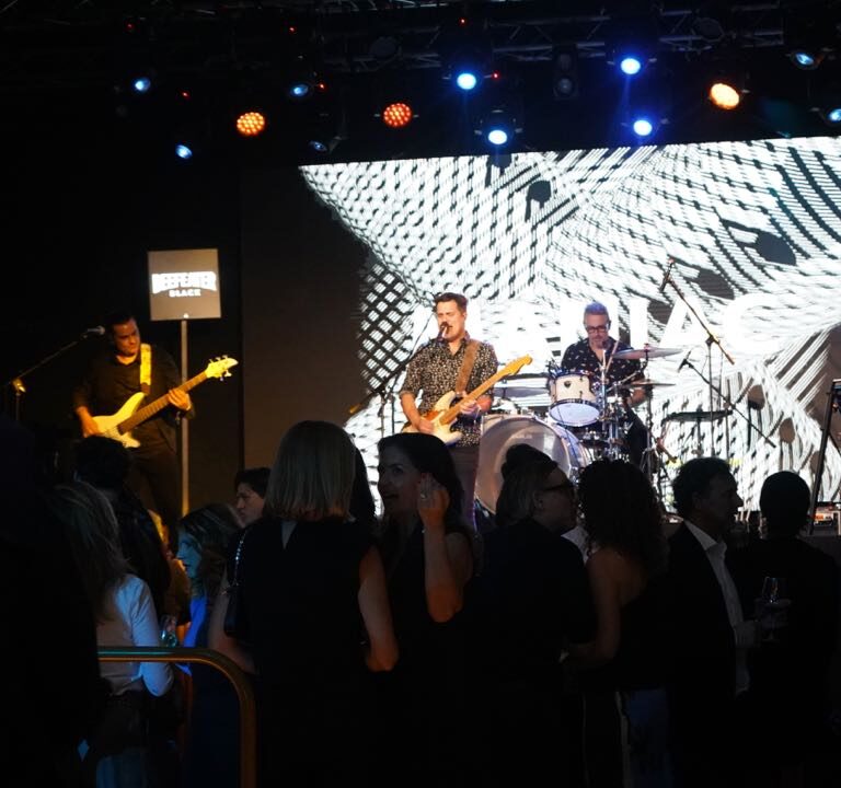 A lo largo de la velada, los asistentes admiraron las actuaciones de malabaristas y bailaron los ritmos ochentenos y noventeros del grupo Stereo Colours, una banda musical con un repertorio de hits excepcional y una puesta en escena increíble.