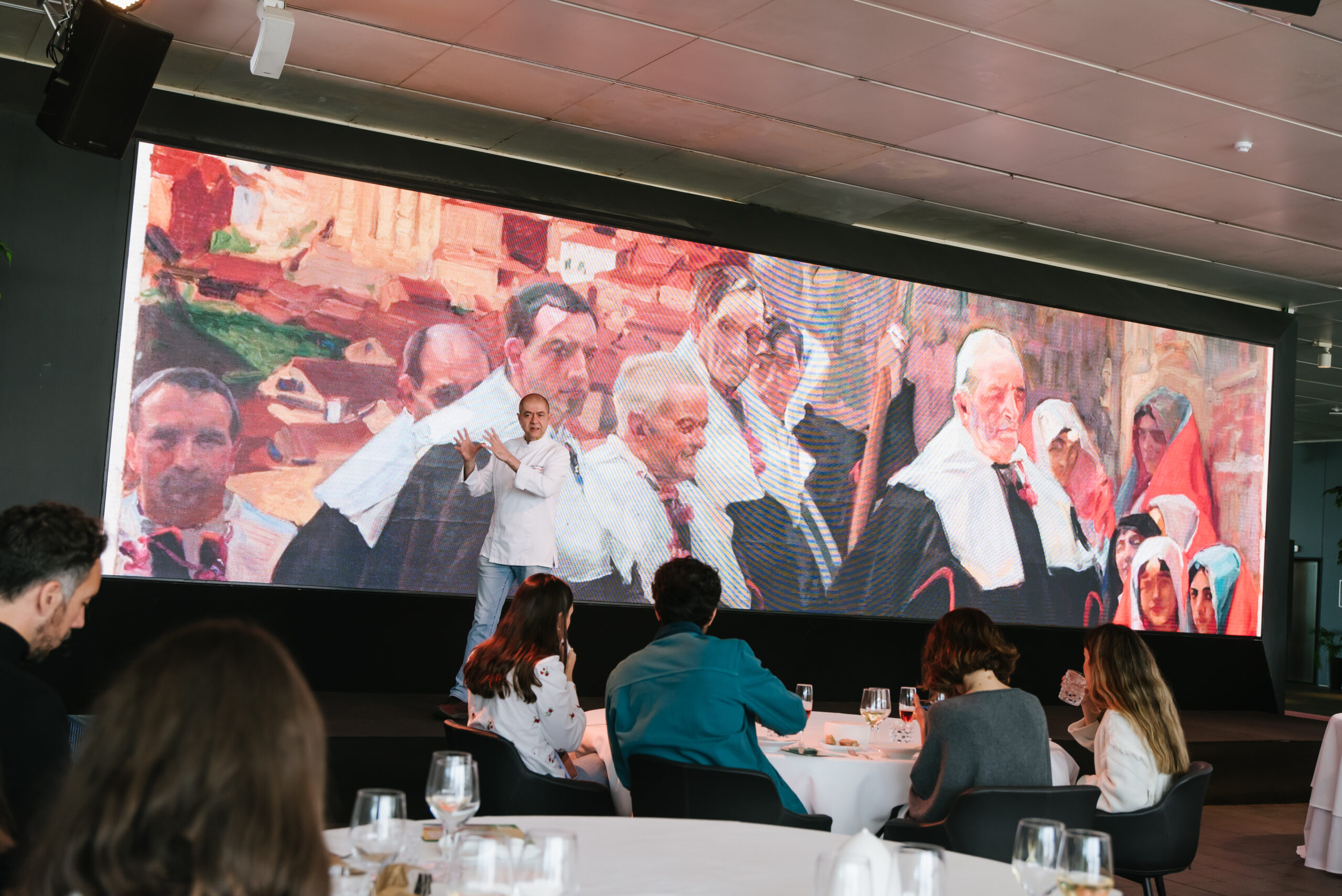 El menú ‘Homenaje a Sorolla’ del chef Jorge de Andrés, Premio Nacional de Cultura Gastronómica 2022 se renueva en esta séptima edición, no en fondo sino en forma, adaptándose a un nuevo espacio en Veles e Vents con una pantalla de 7 metros donde se proyecta la obra del famoso pintor valenciano a la que el chef le ha dedicado más de cinco años de investigación.