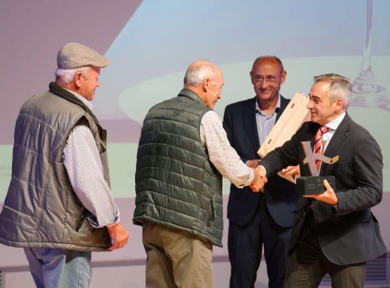 Uno de los momentos más especiales de la noche fue la entrega de la distinción al Mérito Vitivinícola a una parcela del Alto Turia que cumple 100 años, siendo la más antigua, adscrita a la Denominación de Origen Valencia. Sus viticultores, Valentín y Rafael Collado Herreros, recogieron el reconocimiento visiblemente emocionados, en representación de tantas generaciones que han hecho del vino su forma de vida.
