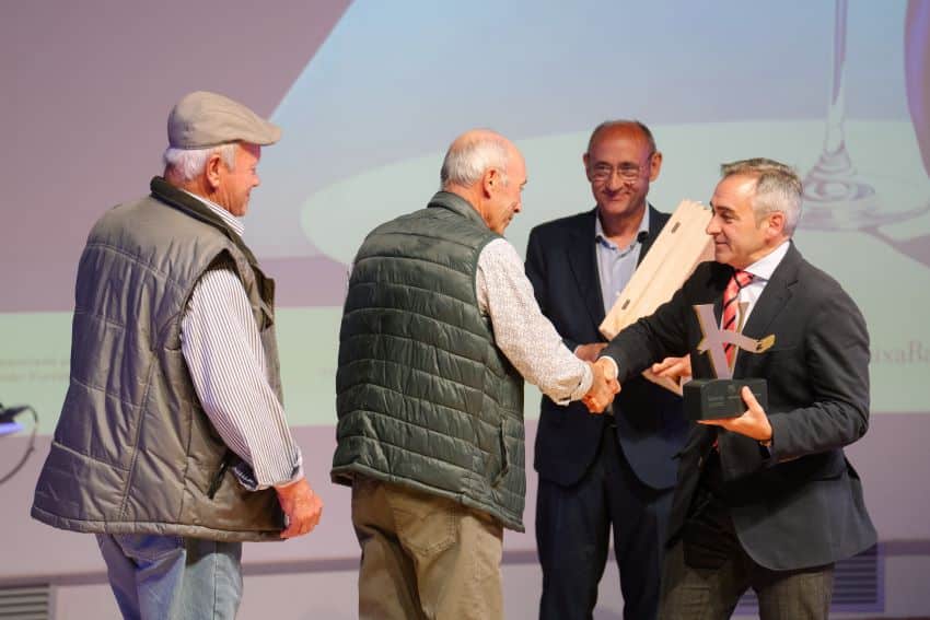 Uno de los momentos más especiales de la noche fue la entrega de la distinción al Mérito Vitivinícola a una parcela del Alto Turia que cumple 100 años, siendo la más antigua, adscrita a la Denominación de Origen Valencia. Sus viticultores, Valentín y Rafael Collado Herreros, recogieron el reconocimiento visiblemente emocionados, en representación de tantas generaciones que han hecho del vino su forma de vida.