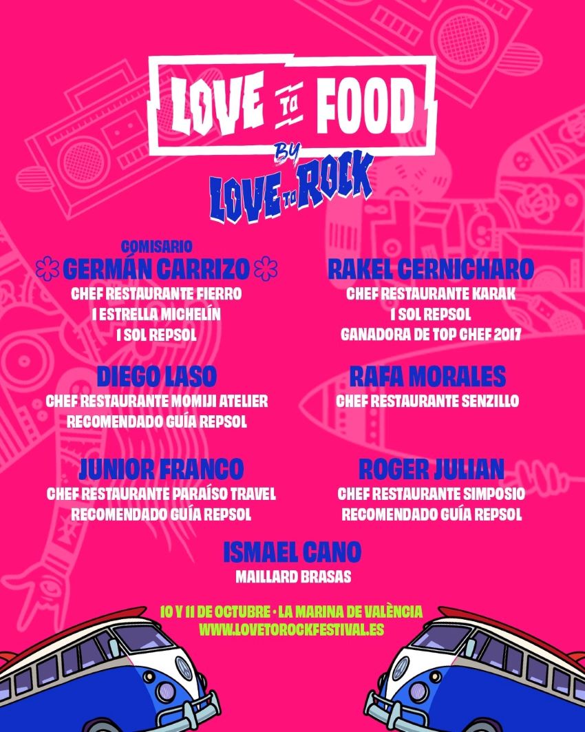 Un año más, el festival refuerza su apuesta gastronómica con Love to Food, una zona que pone en valor la alta cocina adaptada al entorno festivalero. El comisariado corre a cargo del reconocido chef Germán Carrizo, del restaurante Fierro (1 Estrella Michelín y 1 Sol Repsol), creador junto a Carito Lourenço de Doña Petrona y La Central de Postres.