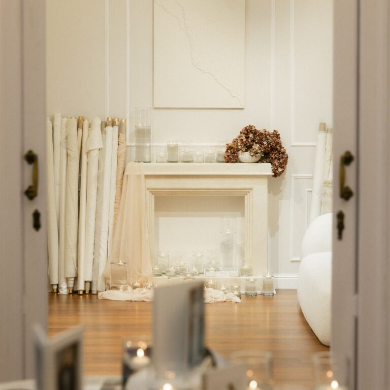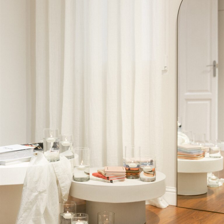 Uno de los aspectos más llamativos del nuevo atelier es la combinación de elementos clásicos y modernos. Los techos altos y con molduras iluminadas aportan una majestuosidad característica, mientras que el mobiliario, de líneas limpias y en tonos marfil, aporta un toque contemporáneo que evita sobrecargar el espacio. “Lo más importante era que los salones fueran diáfanos para tener suficiente espacio para trabajar y que las clientas estén cómodas”, explican desde el equipo. Este equilibrio entre lo clásico y lo moderno refleja también el enfoque de la firma en sus colecciones, donde las técnicas tradicionales de confección se entrelazan con diseños frescos y actuales.