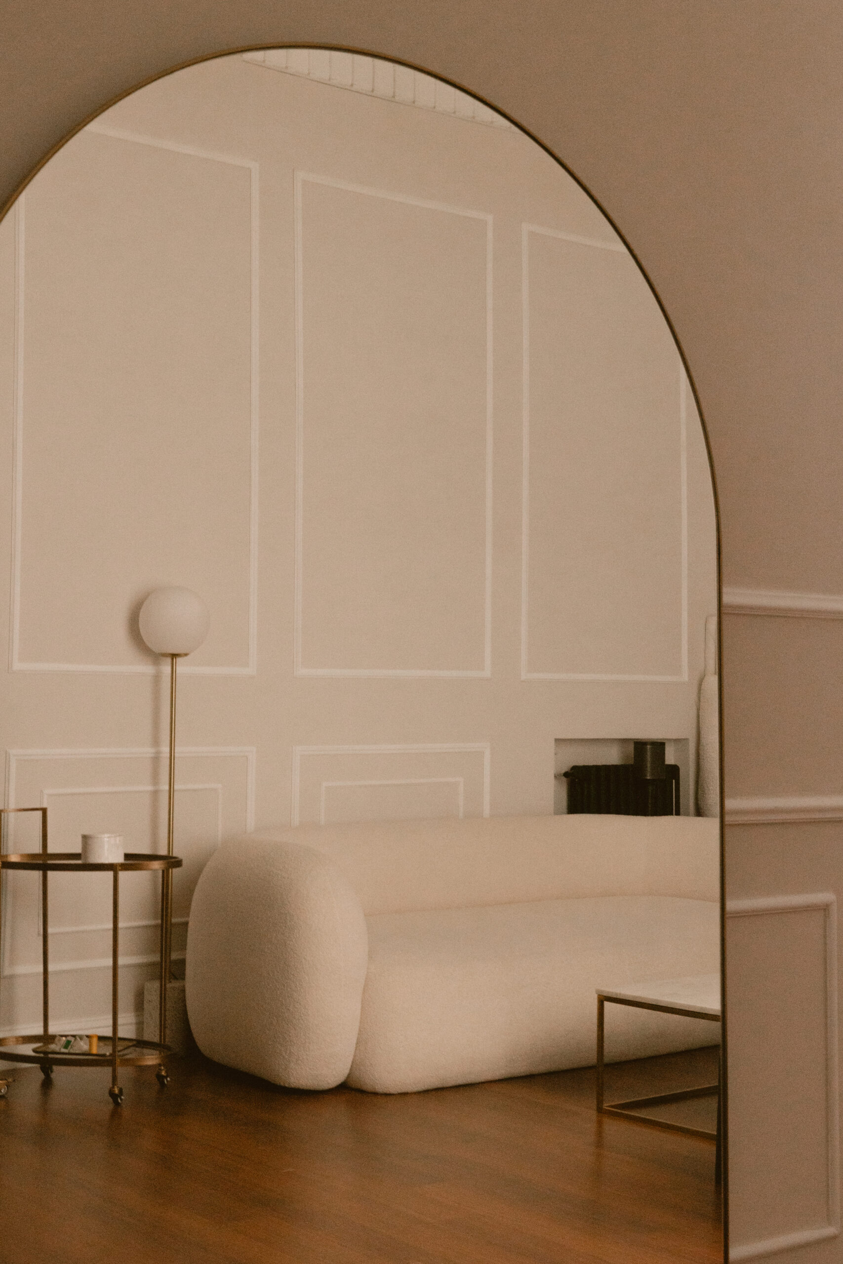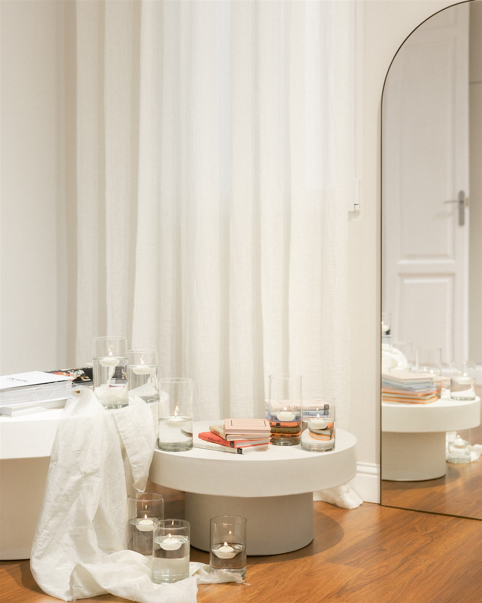 Uno de los aspectos más llamativos del nuevo atelier es la combinación de elementos clásicos y modernos. Los techos altos y con molduras iluminadas aportan una majestuosidad característica, mientras que el mobiliario, de líneas limpias y en tonos marfil, aporta un toque contemporáneo que evita sobrecargar el espacio. “Lo más importante era que los salones fueran diáfanos para tener suficiente espacio para trabajar y que las clientas estén cómodas”, explican desde el equipo. Este equilibrio entre lo clásico y lo moderno refleja también el enfoque de la firma en sus colecciones, donde las técnicas tradicionales de confección se entrelazan con diseños frescos y actuales.