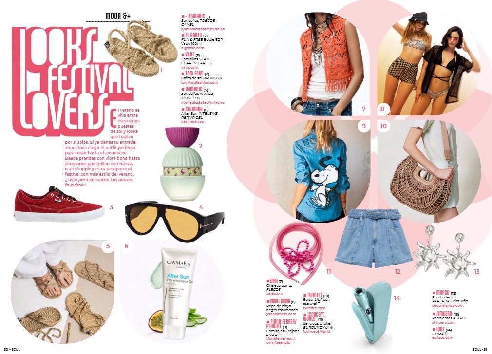¿Y la ropa? Te sugerimos tejidos naturales, colores cálidos y siluetas relajadas. Como el chaleco de punto con flecos de Zara, los shorts denim PAPERBAG de Mango, o la camisa azul tejana con estampado SNOOPY de la colaboración entre Fiona Ferrer y Peanuts. Para completar el outfit, el bolso lila con asa oval de Twinset es una pieza funcional con un aire retro encantador.