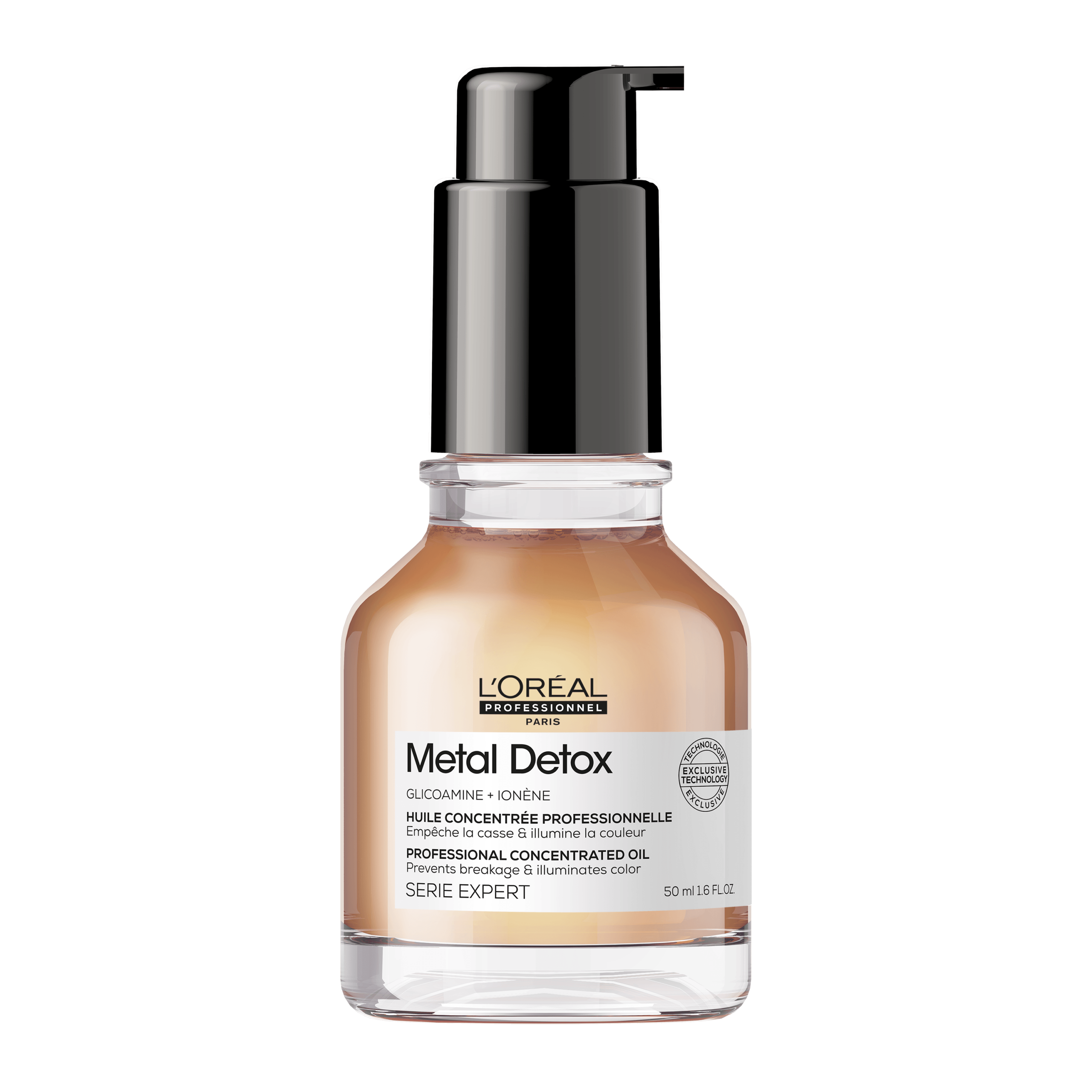 L’Oréal Professionnel Metal Detox Aceite concentrado protector antidepósitos. Este sérum protege la fibra de los depósitos de partículas después de cualquier servicio de color, balayage o decoloración. El cabello queda más sedoso, suave y nutrido al instante.