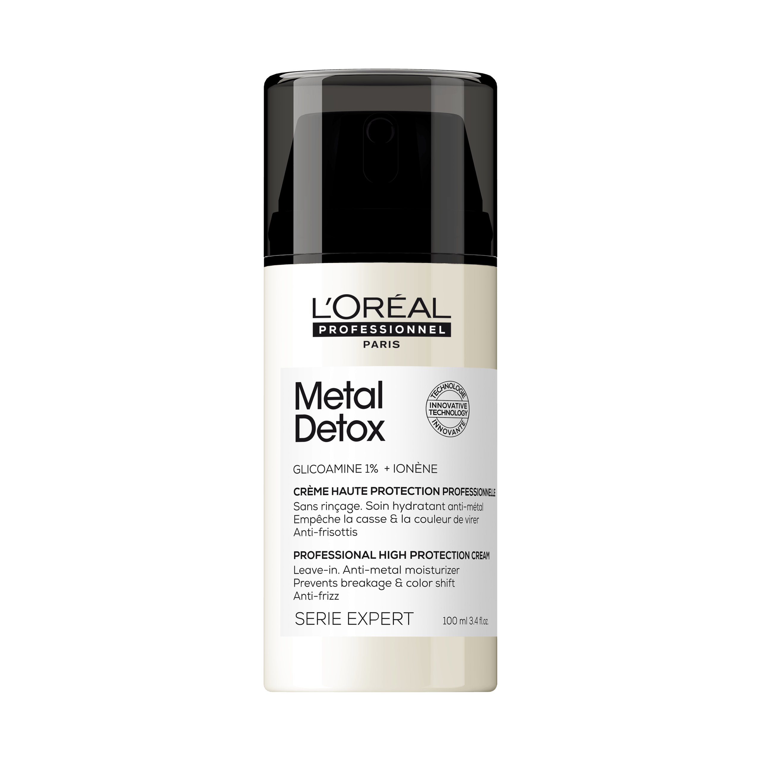 L’Oréal Professionnel Metal Detox Crema de alta protección anti-metales. Esta crema sirve, entre otras cosas, para proteger el cabello contra los daños inducidos por los rayos UV, la oxidación, el cepillado y el calor de hasta 230°C.