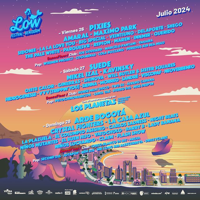Una veintena de nombres cierran el cartel de #Low2024, todos ellos enfocados a la pista de baile. Putochinomaricón DJ set, Yahaira, Wisemen Project o Chico Blanco DJ Set, entre otros, cierran el cartel de una edición que quedará para el recuerdo entre los mejores sets de las escenas indie-pop y de club. Estos nombres se unen a los ya anunciados entre los que destacan: Pixies, Amaral, Maxïmo Park, Suede, Mikel Izal, Arde Bogotá o Los Planetas -celebrando los 30 años de Super 8- entre otros muchos.