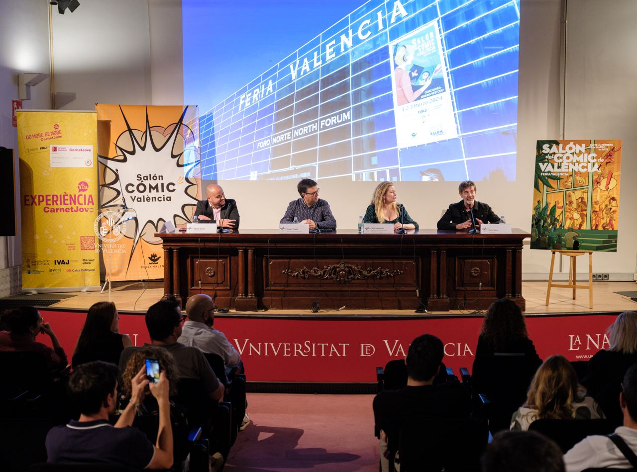 En este sentido, al acto han asistido Adela Cortijo, directora del servicio de Cultura Universitària; Vicente Ripoll, director general del Institut Valencià de la Joventut; Enric Estrela, director de la Institució Alfons el Magnànim; África Ramírez, presidenta de l’Associació d’Editorials del País Valencià; Álvaro Pons y Noelia Ibarra, codirectores de la Cátedra de Estudios del Cómic, SM/UV. Todos ellos han expresado su apoyo condicional al Salón y han destacado la importancia de una mayor colaboración entre todas las entidades involucradas para consolidar el Salón como el más importante de España en su ámbito.