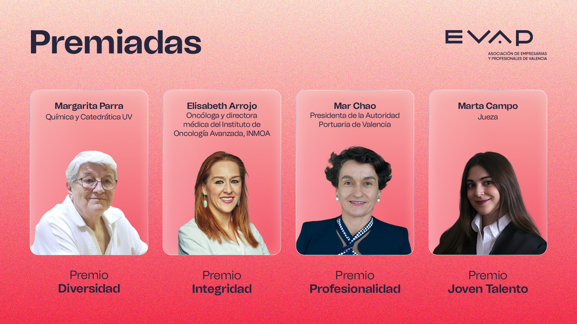 La Asociación de Empresarias, Directivas y Profesionales de València (EVAP), fundada en 2002, lleva 20 años reconociendo a mujeres que, con su visión y talento, han alcanzado hitos destacados en sus respectivos sectores. Estos galardones tienen el objetivo de dar visibilidad a las mujeres que son un modelo para el presente y para las futuras generaciones.