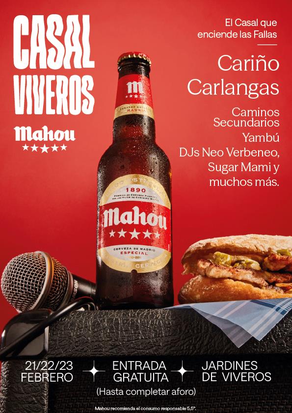 Del 21 al 23 de febrero, los Jardines de Viveros de Valencia se convertirán en el gran punto de encuentro que marca el inicio de las Fallas, un espacio donde la música, la tradición y la celebración se fusionan con una propuesta que reunirá a artistas de renombre, una variada oferta de géneros y una atmósfera dinámica que atraerá a miles de asistentes con la nueva edición del Casal Viveros Mahou. Este evento gratuito, ofrecerá experiencias cinco estrellas en torno a la gastronomía, la música en directo y la cultura cervecera.