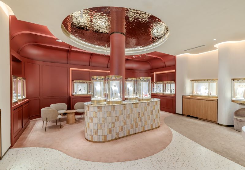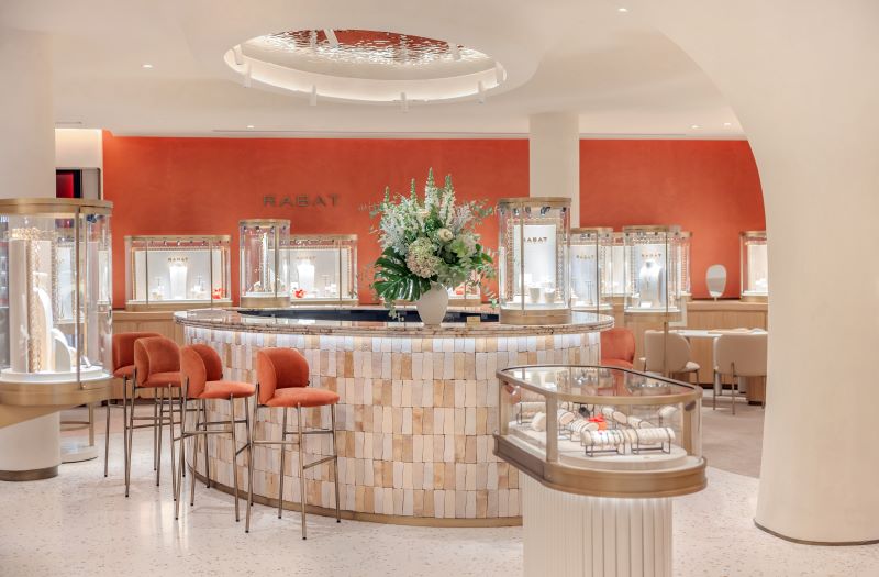 Finalmente, cada elemento del diseño ha sido cuidadosamente seleccionado, utilizando materiales nobles y artesanales que remiten a la creación de las joyas de RABAT. La boutique refleja la magia, delicadeza y amor que caracteriza la firma, garantizando una experiencia que respeta la excelencia, la maestría y el savoir-faire singular de RABAT.