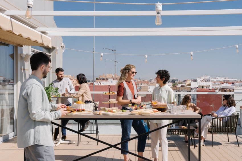 Wayco Cabanyal ofrece un entorno único para eventos de empresa, con espacios amplios, luz natural y diseño con alma. Su Terraza Miramar, en la última planta, regala vistas al mar, atardeceres inolvidables y el carácter vibrante del Cabanyal. A un paso del Puerto y La Marina, es ideal para reuniones, formaciones o presentaciones con un toque especial. Además, es posible combinar la jornada con salas equipadas con tecnología puntera, atención personalizada y un catering propio con menús elaborados por su chef. Un lugar donde el trabajo se fusiona con el disfrute. Wayco Cabanyal. Un espacio inspirador mirando al mar.