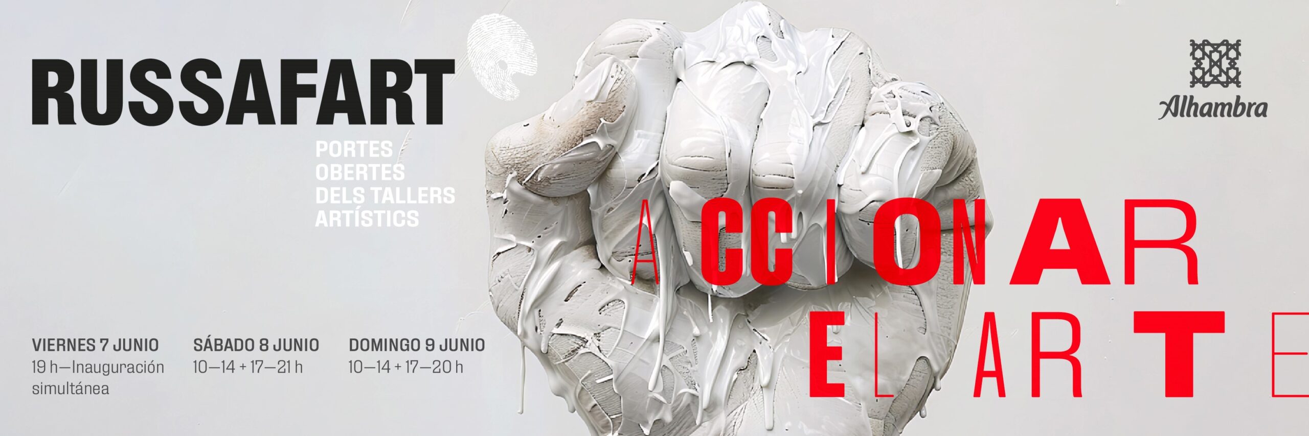 La Bienal de Arte Russafart se celebrará los días 7, 8 y 9 de junio. Tal y como refleja el lema de esta edición de Russafart (creada por el diseñador Boke Bazán), se vuelve a “ACCIONAR” el arte. Se pone en marcha de nuevo, acciona la palanca que cada dos años nos adentra en los talleres artísticos del barrio de Russafa.