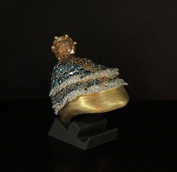 Entre las joyas más destacadas de SIETE Gallery se encuentran sus anillos y sortijas, auténticas obras de arte en miniatura. Algunas de estas piezas recrean escenas evocadoras, como un tiovivo en movimiento o un atardecer que captura la calidez y los colores del ocaso, reflejando un enfoque artístico y personal que las convierte en joyas únicas.