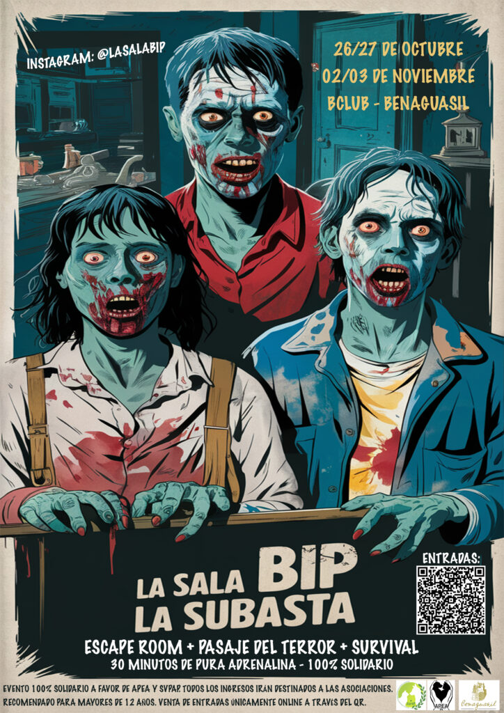 Este Halloween, la Sala BIP regresa con su evento anual, esta vez con la IV edición titulada “LA SUBASTA”, una combinación única de adrenalina, terror y solidaridad. La actividad, que tendrá lugar en Benaguasil, ofrecerá una experiencia inmersiva de 30 minutos. En esta ocasión se fusiona un Escape Room, un Pasaje del Terror y un Survival Zombies, todo con un objetivo benéfico: ayudar a los animales sin hogar.