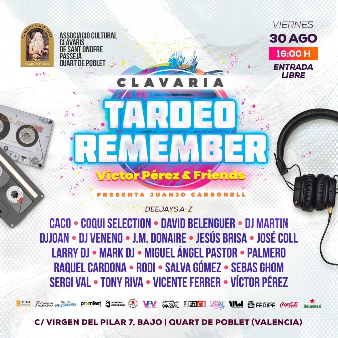 Como cada año vuelve el Tardeo Remember de la Passejà de los Clavarios de Sant Onofre de Quart de Poblet, que este año se celebrará el viernes 30 de agosto. Una cita que empezó siendo una paella con amigos y que se ha convertido en una gran cita anual a la que acuden medios, autoridades, proveedores, clientes, vecinos, amigos, Dj’s y todos los amantes de la música remember. Un evento que se ha consolidado año tras año.
